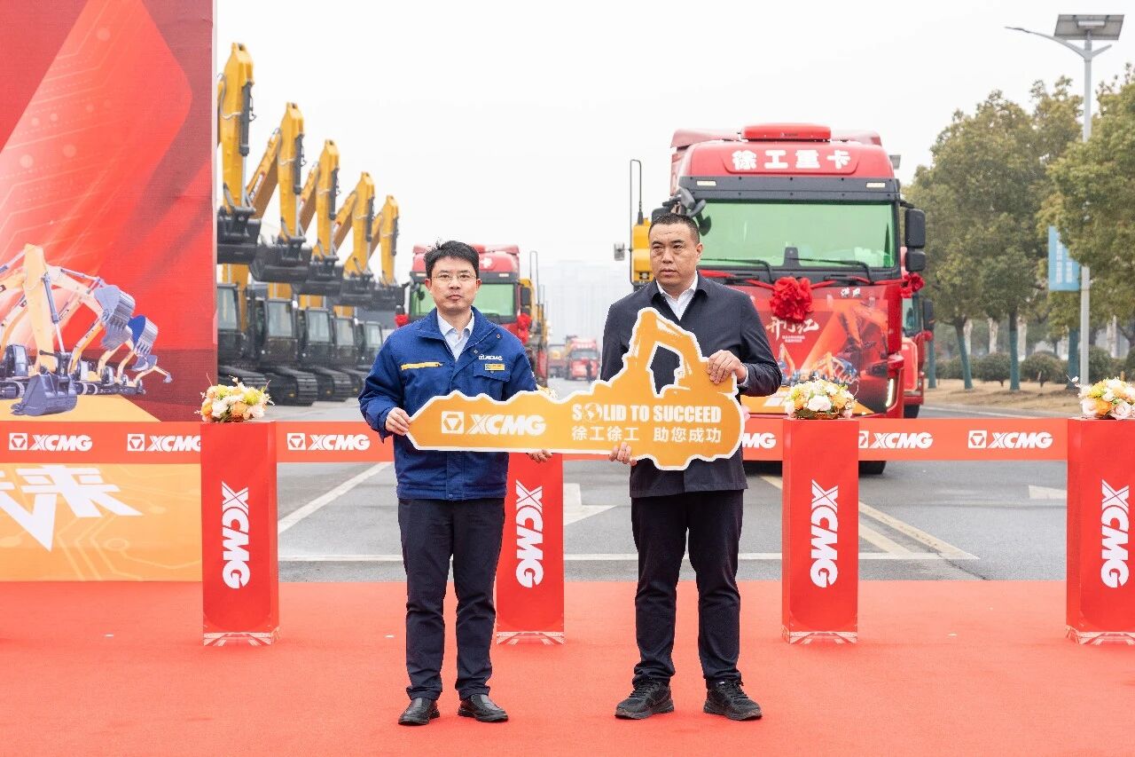在智能制造基地的產品發運區,20余臺身披“徐工金”戰袍的徐工大噸位挖掘機整齊列隊,宛如等待檢閱的鋼鐵戰士。“新年開工,選擇徐工設備開啟新一年的新征程,這個決定讓我們充滿信心。”客戶代表在現場表示。