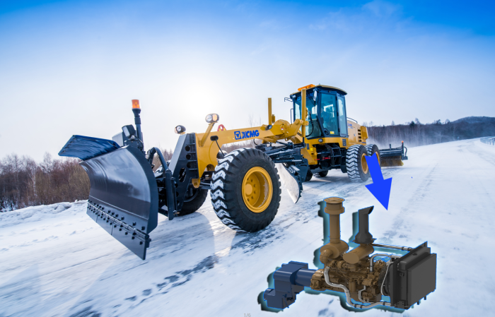 徐工除雪平地機針對極端環境采用發動機進氣預熱系統,配置超低溫冷啟動系統,保證零下40℃環境溫度下的正常啟動、工作。