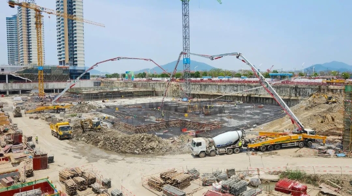 據了解,橫琴科學城(一期)是全國最大的EPC房建項目,涵蓋31棟建筑,用地面積約32.2萬平方米,總建筑面積高達116萬平方米。而此次施工更是需要一次性澆筑5000方C35標號混凝土,這無疑是一場對設備性能與施工團隊能力的嚴峻考驗。