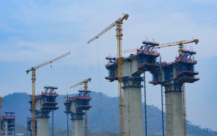 雅長特大橋地處高海拔山區(qū),山坡高聳峻峭,沿線山高谷深,地勢起伏大,相對高差達270米,使得橋梁工程墩柱高、跨度大、T構多。面對超高墩施工風險高、技術要求高、作業(yè)場地狹窄等難題,十余臺徐工XGT6013-6S1、XGT6515-10S1憑借精準、高效、安全的吊裝性能,將桁架鋼筋、箱梁護板等部件吊至百米高空,為項目建設提質增效。