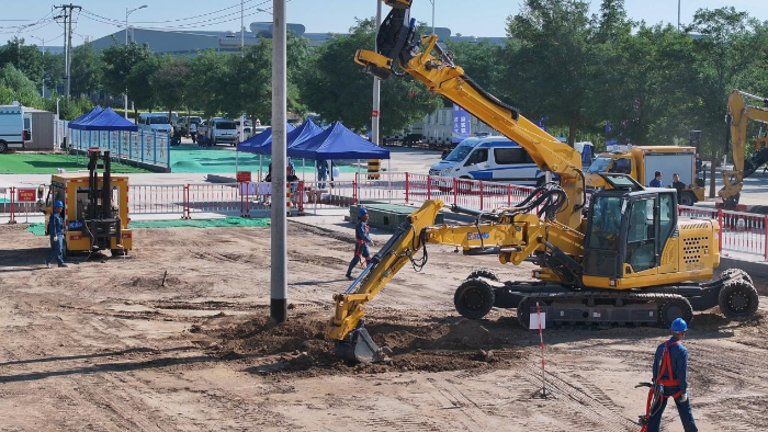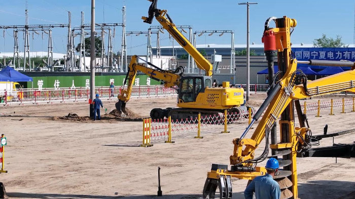 在寧夏現場的應用中,徐工開挖立桿一體機的安全性和效率出色,完成一套完整工序(挖坑-放置預制件-抓桿-豎桿-回填土-夯實)僅需18分鐘,比競品效率快三分之一。