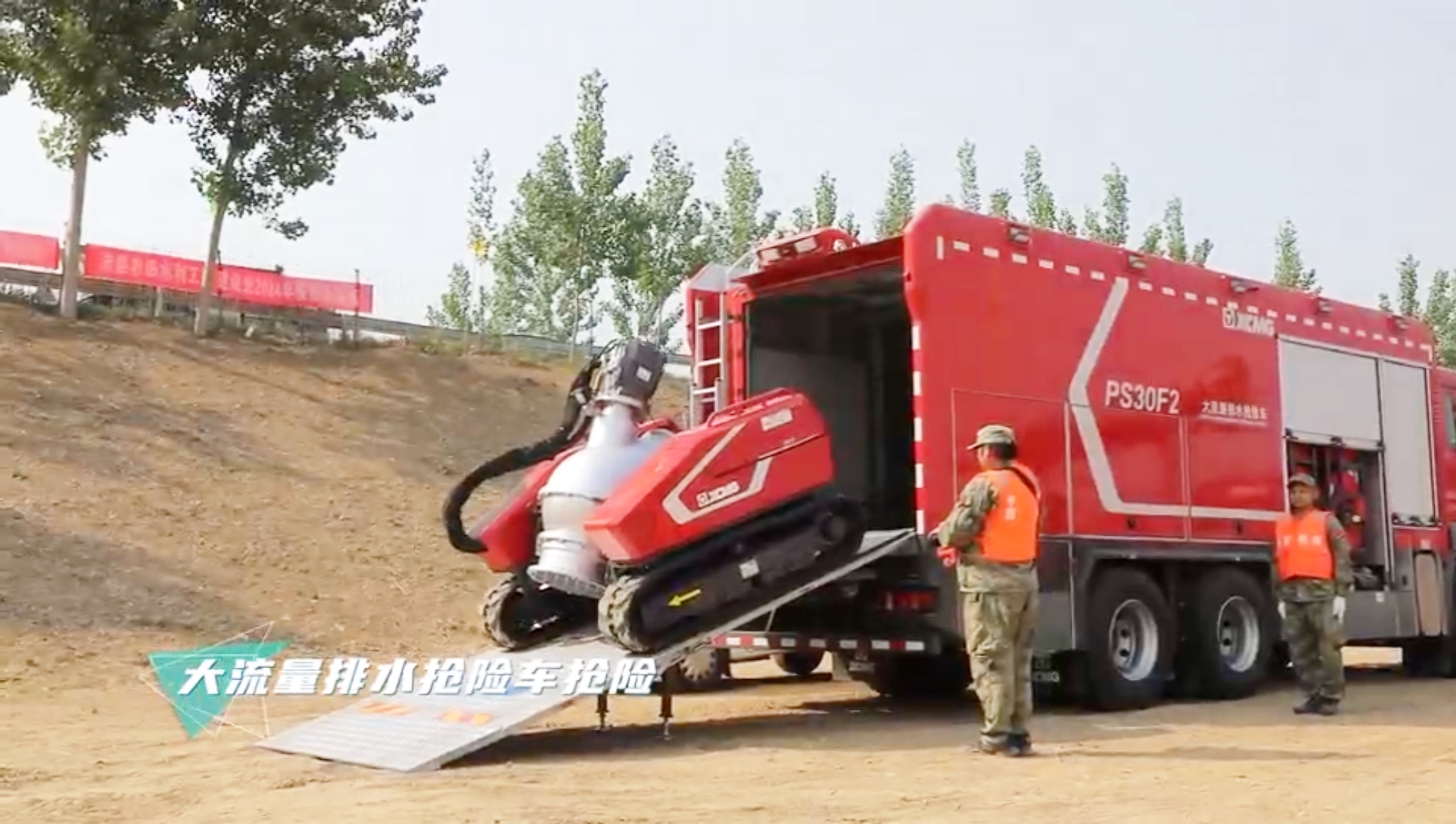 徐工子母式排水搶險(xiǎn)車,也在演練中展現(xiàn)了其遠(yuǎn)程分離控制的獨(dú)特優(yōu)勢。