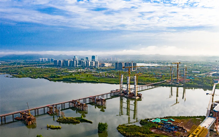 遂寧涪江六橋項目建設現場