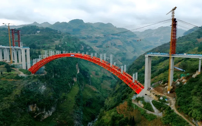 “這座橋工期緊,技術難度大,吊裝過程中構件結構重、空間姿態調整難度高,給項目施工帶來了一定困難。”白水河特大橋項目的鋼結構負責人毛宗宇說。白水河特大橋主橋采用跨徑340m的上承式鋼管混凝土變截面桁架拱橋,全橋共設計58個吊裝節段,在百米高空中完成拼裝,而誤差要保持在毫米級,這些為塔機施工帶來了高難度挑戰。