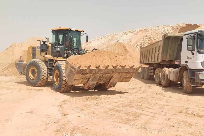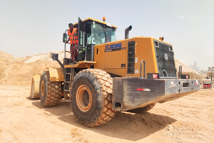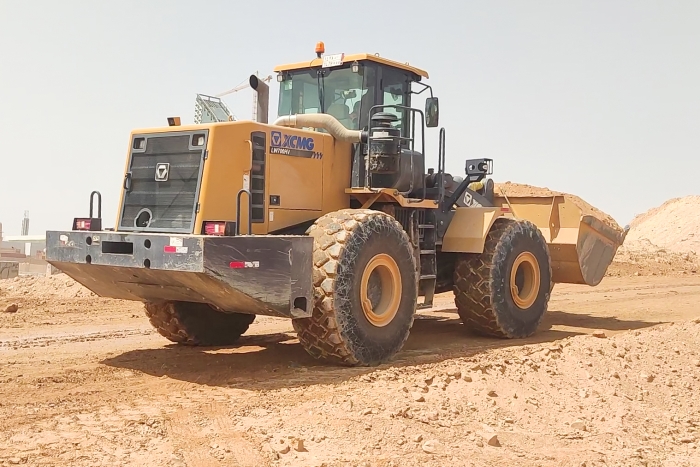 中東當地一座大型公園的建設現場,徐工LW700HV正熱火朝天地干著。