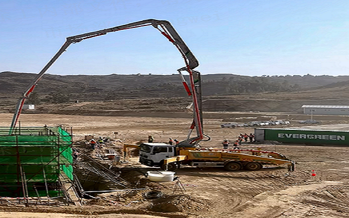 此次工程不僅面臨施工設(shè)備和材料供應(yīng)奇缺等難題,且厄籍職工沒有大型混凝土澆筑經(jīng)驗(yàn),加之項(xiàng)目澆筑需要長時(shí)間、大方量的持續(xù)性作業(yè),施工困難重重。徐工HB43V泵車和徐工攪拌車協(xié)力共進(jìn),完美應(yīng)對此次澆筑任務(wù)。