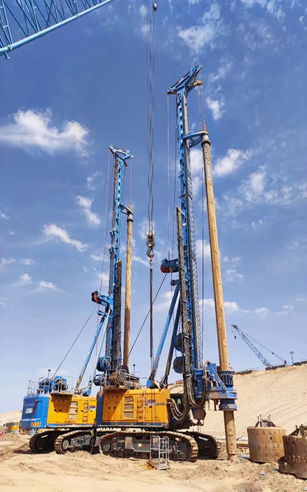 客戶共采購4臺徐工大噸位旋挖鉆機,主要進行 NEOM新城地下車庫與輕軌項目施工。施工樁60-90m、樁徑2-2.5m、施工深度200m,面對沙土地質,徐工旋挖鉆機游刃有余,平均每天完成3根樁的施工。