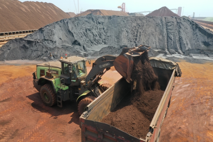 在日照港嵐山港區,徐工8T新能源裝載機投入使用。