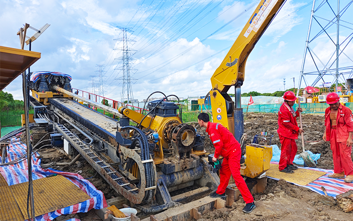 為了確保定向鉆穿越有序推進和回拖順利完成,徐工技術人員隨項目部提前對現場進行實地勘察,培訓作業人員,開展管道回拖演練。施工過程中,擴管回拖到泥巖層時,土質粘稠抱鉆,徐工XZ6600水平定向鉆機搭載的“扭矩自適應自動巡航施工技術”“多工況調速和旋轉”“推拉多檔控制技術”為回拖提供了更大的扭矩,確保了工程順利推進。