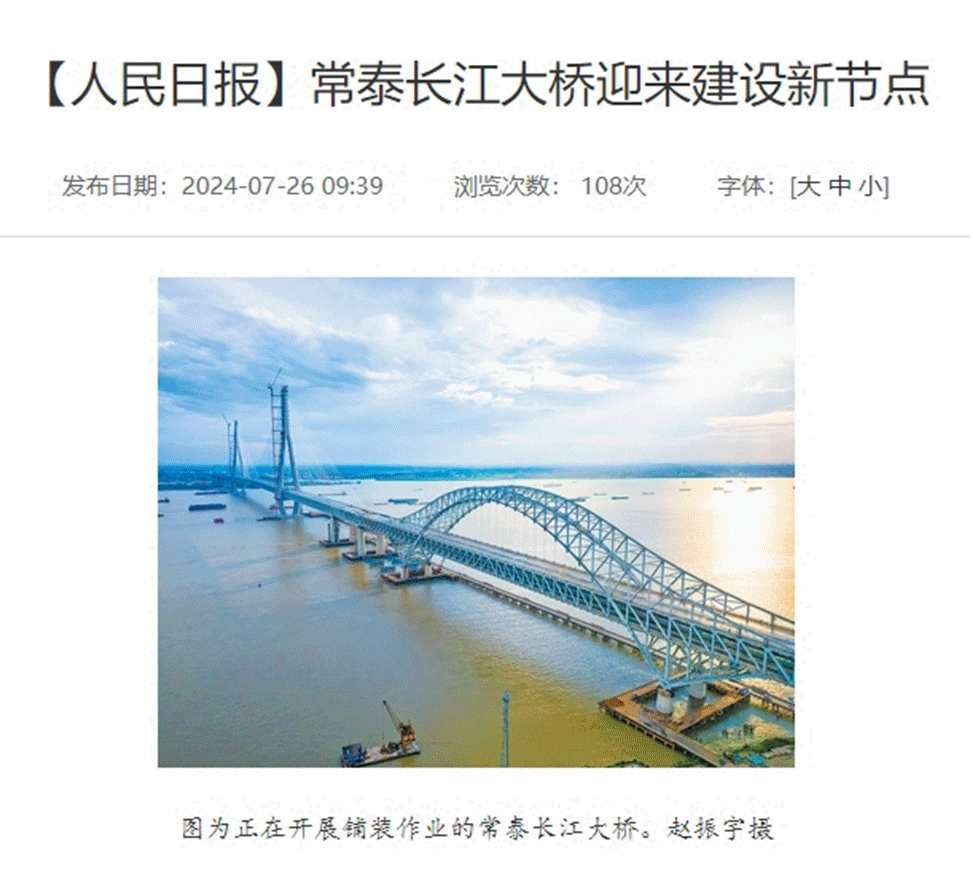 常泰大橋近日迎來了項目新突破——