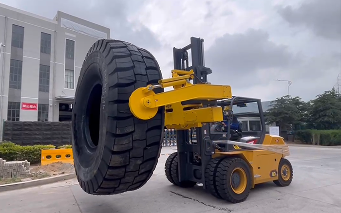 近日,在山東地區某大型輪胎廠內,徐工孔雀系列高壓重載鋰電 8 噸叉車,靈活適配屬具輪胎夾,正在高效進行輪胎搬運作業,助力客戶達成生產目標。