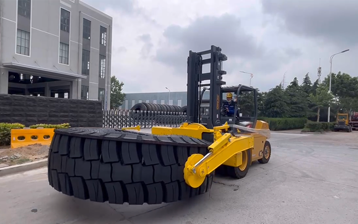 輪胎行業工況復雜,對叉車性能要求極高。徐工叉車深入調研后為客戶推薦此款產品。8 噸孔雀叉車搭配輪胎夾,承載能力強,適應各種規格輪胎搬運。整車動力充沛,操控精準便捷,能滿足長時間高強度作業需求。