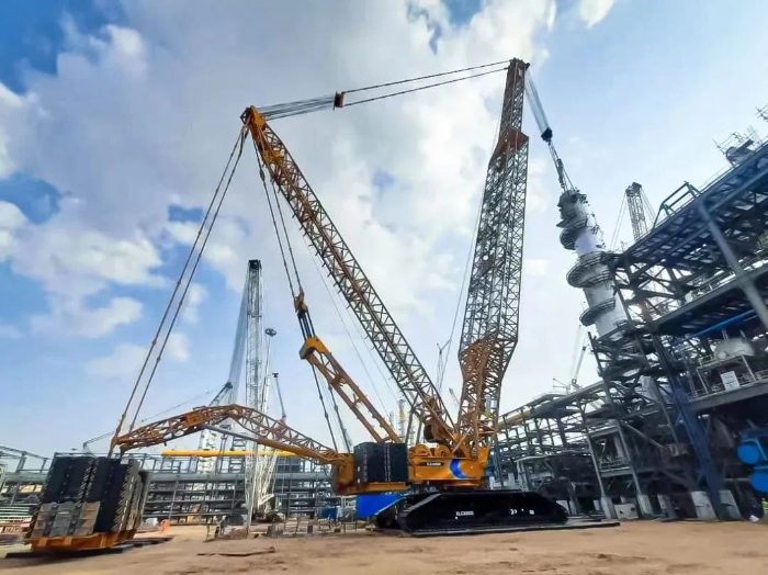 近日,徐工XLC30000(2000噸)履帶起重機現身海外,助力某大型石油煉化項目首臺氫化反應器順利安裝就位。