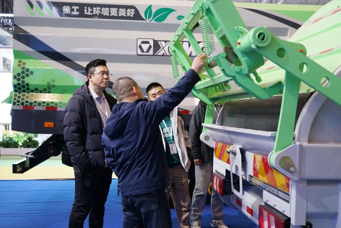本次展會,徐工出場的四臺純電動產品均為徐工一體化新能源環衛設備,覆蓋洗掃車、抑塵車、高壓清洗車、壓縮車多個品類。作為國內實施專業車整體技術匹配研究的企業,徐工“底盤+上裝”一體化配置,確保無縫匹配。不僅如此,整車的控制、散熱、通訊等方面的完美融合,使得安全性、經濟型、動力性、穩定性強勢提升。