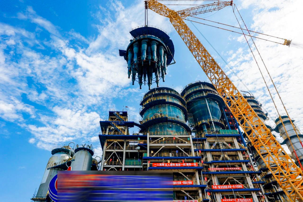近日,XLC30000履帶起重機在我國東南地區某大型石化項目基地順利完成總重達648.6噸的沉降器舊旋分系統吊裝工作。