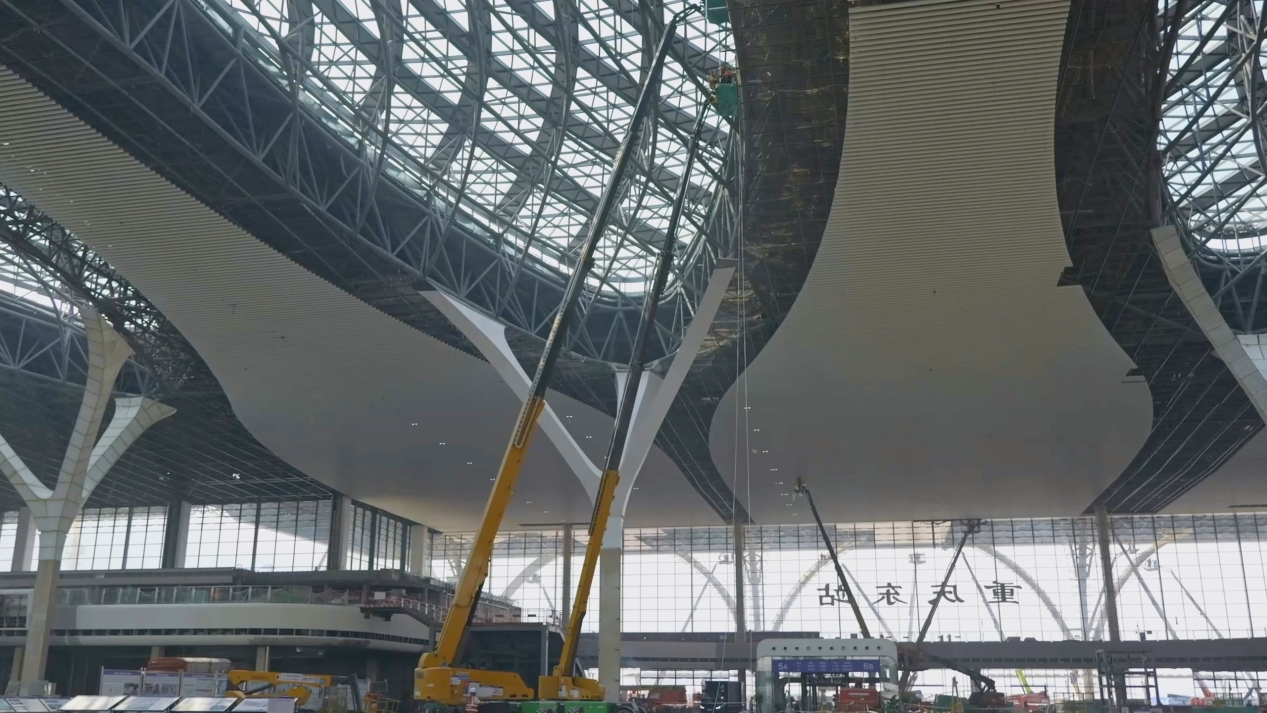 在重慶東站,十數臺高空作業平臺正在如火如荼的進行鋼結構的安裝工作,這些高空作業平臺作業精準高效,動作平穩靈活,為施工工作節省了大量時間與人力成本。