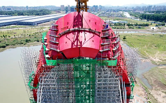隨著重達40噸的主橋鋼塔柱最后一個節段