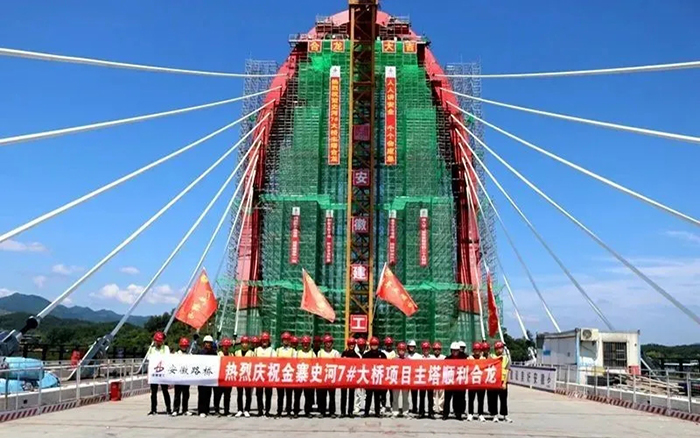 金寨史河7#大橋全長629米,采用“紅色搖籃”造型,是安徽省金寨縣發展紅色文旅產業的重要新地標建筑,也是安徽省境內造型最美觀最獨特,集人文歷史、防汛抗洪、交通運輸功能為一體的橋梁工程。