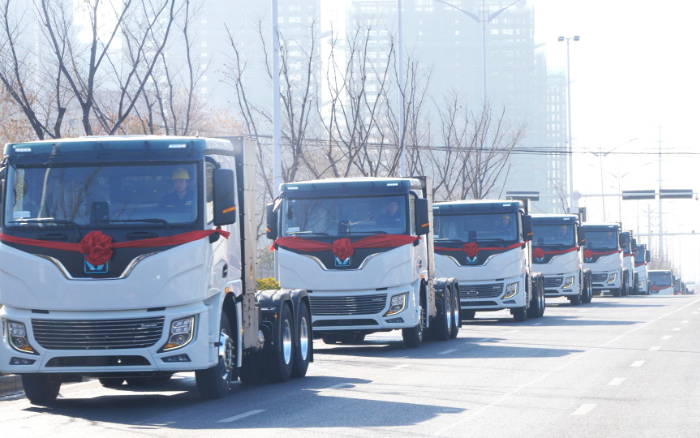 “我宣布,徐工新能源牽引車百臺交付暨千臺簽約儀式圓滿禮成,發車!”徐工集團副總經理,徐工汽車總經理、黨委書記夏泳泳一聲令下,百臺徐工新能源牽引車隊列整齊、邁步向前,為更多區域“雙碳”目標實現作出更大貢獻。