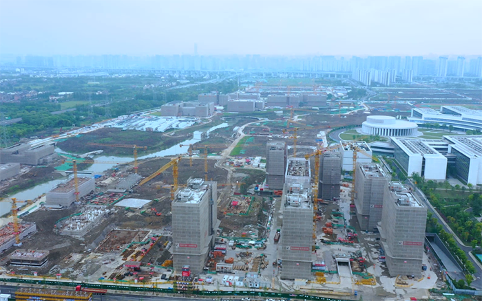西湖大學總體工程體量大、質量要求嚴、周轉場地小,項目采用綠色建造技術及混凝土組合結構應用技術,鋼結構拼接、多工種交接點使得吊裝施工更復雜,對群塔施工作業提出了更高的要求。