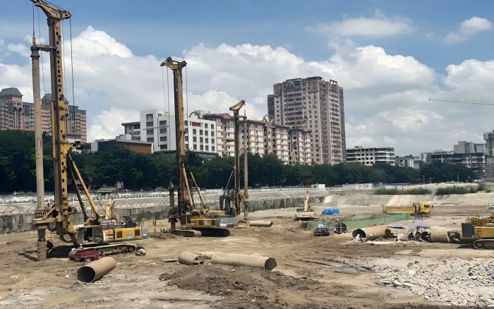 施工區地質構造復雜,石灰巖、沙層,粘土和溶洞交錯,樁深20-30m,樁徑0.8-1.4m,且面臨塌方、縮孔、漏漿等危險。如此高難度的施工條件,項目方果斷選擇徐工旋挖鉆機進行助力。
