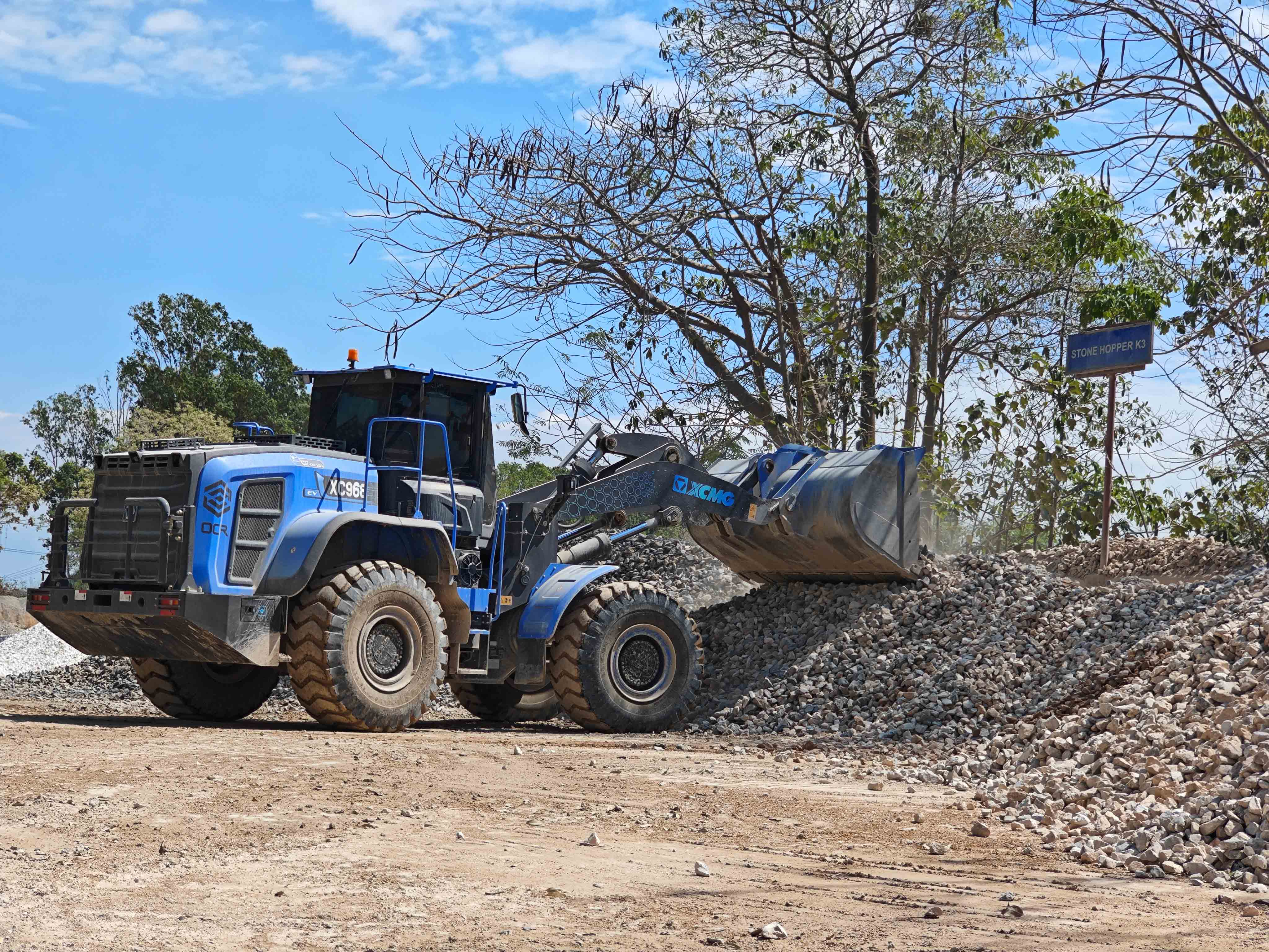 礦山生產,作業時間長,物料堅硬密度高,道路崎嶇,工況較為險重。徐工XC968-EV純電動裝載機的新能源優勢,在礦道端的鏟裝作業優勢非常明顯,相對密閉空間內,零排放、低噪音對工段一起作業的戶外工作人員的健康非常友好。