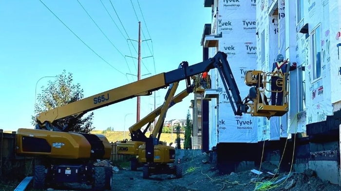 坐標北美,多臺徐工高空作業平臺、伸縮臂叉裝車穿梭于一處大型住房建設項目上,成為施工現場一道亮眼的風景線。
