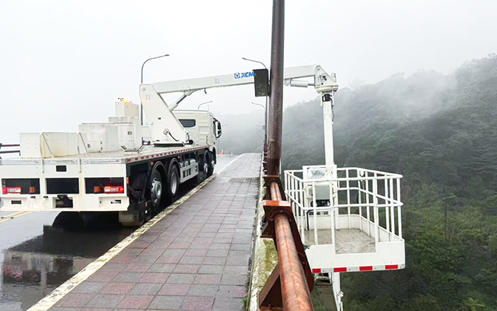 在檢測現場,徐工 QJZ18 大顯身手。其最大跨寬 4.4 米、最大跨高 5.6 米,水平作業幅度達 18 米,輕松跨越復雜橋體,快速抵達指定檢測點。施工單位現場負責人感慨:“以前檢測這種大橋,調整設備位置耗時久,效率低,現在有了徐工 QJZ18,效率大幅提升。” 其 270kg 承載的作業平臺,讓檢測人員能便捷攜帶儀器,細致檢測橋梁各處。