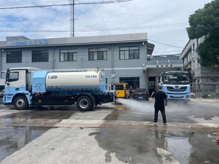 活動現場,徐工純電動高壓清洗車與純電動掃路車協同作業,成為焦點。純電動高壓清洗車宛如一位精準高效的“清潔能手”,憑借大于8Mpa的高壓水泵及24m的對沖清洗寬度,對道路進行沖洗。無論是頑固的油污、泥沙,還是藏匿在縫隙中的灰塵,都能被迅速沖刷干凈。