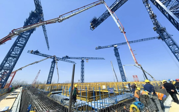 施工隊長緊盯現(xiàn)場,激動地說:“這超長臂架太給力了,以往要反復挪車的難題,現(xiàn)在輕松解決,進度直接提速!”