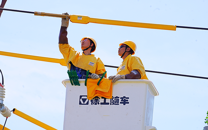當(dāng)日,驕陽似火,酷熱難耐,地面溫度高達(dá) 40℃。但供電工作人員們毫不退縮,他們爭分奪秒,絕緣手套里的手掌早已被汗水泡得發(fā)白,卻仍穩(wěn)穩(wěn)攥著工具精準(zhǔn)操作;斗臂車內(nèi)的溫度計(jì)指針不斷攀升,他們卻顧不上擦去汗珠,全神貫注盯著線路接口。為了縮短停電風(fēng)險窗口,用高效的操作與高溫賽跑,全力保障供電不中斷。徐工 GKJH22A 絕緣斗臂車穩(wěn)穩(wěn)地停靠在作業(yè)點(diǎn)旁,它猶如一位鋼鐵巨人,隨時準(zhǔn)備為施工人員提供堅(jiān)實(shí)的保障。
