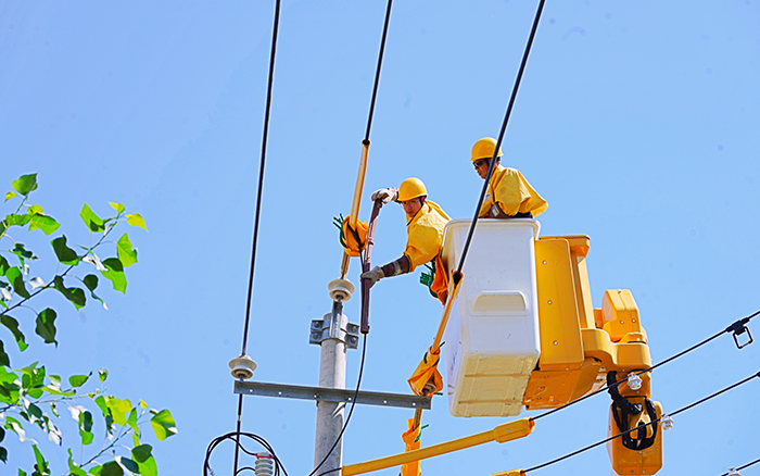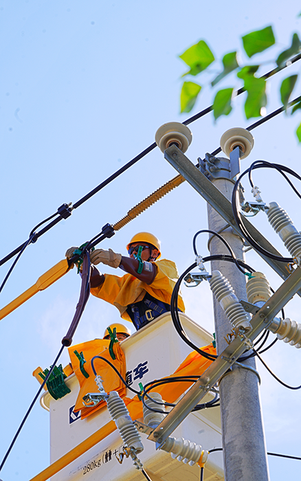 工作人員借助絕緣斗臂車,快速、精準(zhǔn)地抵達(dá)作業(yè)位置。他們身著厚重的絕緣服,有條不紊地開展更換變壓器工作。盡管汗水早已濕透衣衫,但大家的眼神中透露出專注與堅(jiān)定。“絕緣服里像蒸桑拿,好在設(shè)備噪聲小、連續(xù)干活不‘掉鏈子’,不然真扛不住這高溫持久戰(zhàn)。” 一位作業(yè)人員抹著額頭的汗說。