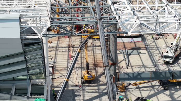 以徐工XGS40K為代表的十余臺(tái)徐工高機(jī)有的“一枝獨(dú)秀”,平穩(wěn)變幅直指站房屋頂;有的精準(zhǔn)定位,靈活探入桁架之間緊貼焊接點(diǎn),成為保障鋼桁架高空焊接作業(yè)的主力軍,熱火朝天的為祖國交通樞紐建設(shè)貢獻(xiàn)力量。