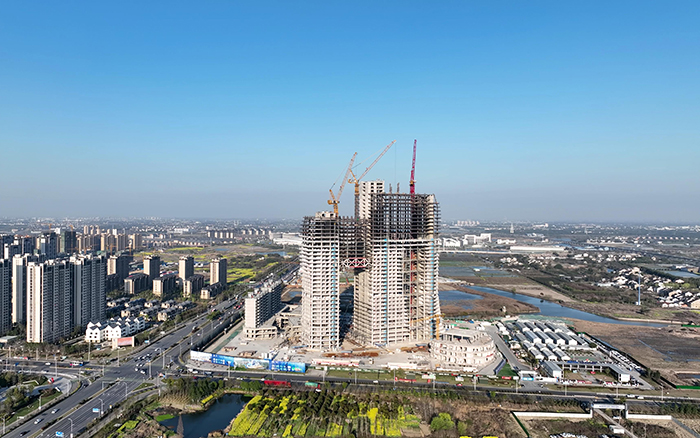 XGL630-50S憑借高效、精準的吊裝性能、出色的操控微動性,克服施工現場扭轉不規則、樓板不連續、尺寸突變、構件間斷等問題,高效完成樓承板、鋼結構和核心筒主體結構等建筑材料的吊裝重任,給江南煙雨帶來了一抹溫暖亮麗的色彩。