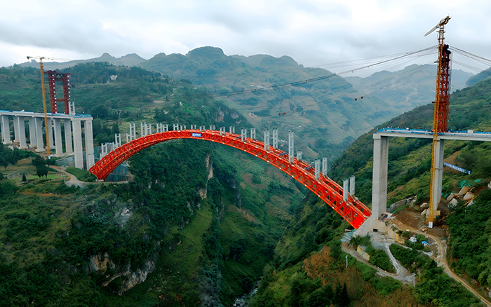 近日,納晴高速白水河特大橋的主拱圈管內混凝土灌注已順利完成,全橋施工進度已達到85%。