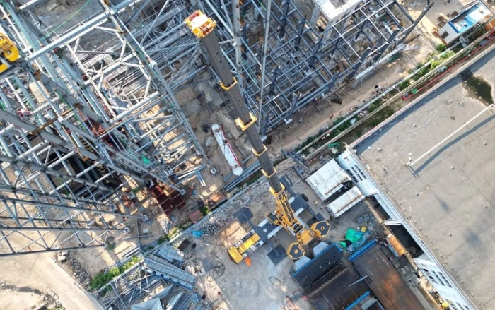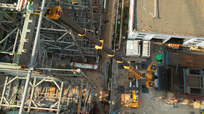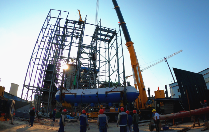 由于場(chǎng)地狹窄,障礙物環(huán)繞,集氣包還需精準(zhǔn)送入已建車間內(nèi)部,車間上方同樣阻礙重重,給施工增加了難度。