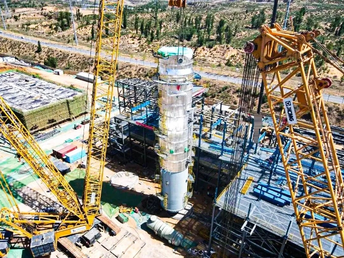 近日,在某大型多晶硅產(chǎn)業(yè)升級項目現(xiàn)場,徐工QUY450(450噸級)履帶起重機攜手XGC12000(800噸級)履帶起重機精密協(xié)同,成功完成項目首臺大型精餾塔吊裝任務(wù)。
