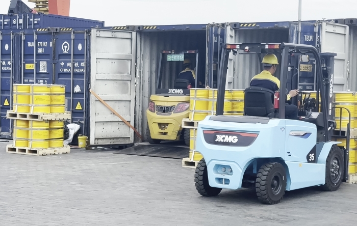 車與孔雀系列高壓鋰電重載叉車穿梭其間,以強勁性能與默契配合,為鐵路運輸高效穩定運轉筑起堅實保障,盡顯徐工裝備的硬核實力。