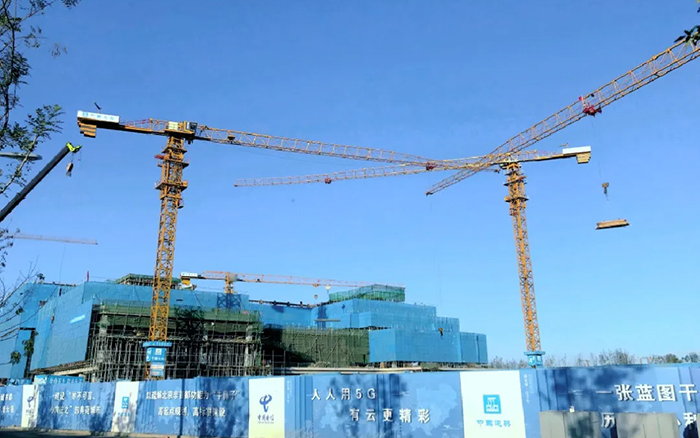這片建筑群是雄安新區中國電信智慧城市產業園項目, 徐工S系列塔機奮戰在施工一線,見證雄安崛起。