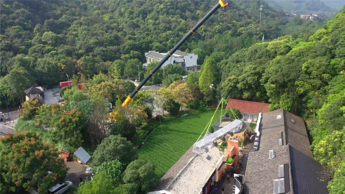 此次影視燈架的吊裝,對于身懷絕技的XCT130G8-1來說,更像是一次從容的“小試牛刀”。設(shè)備前一天抵達(dá),第二天即刻投入實(shí)戰(zhàn)。此次任務(wù)要求將燈架長時(shí)間懸停,設(shè)備的穩(wěn)定性和微動性至關(guān)重要。