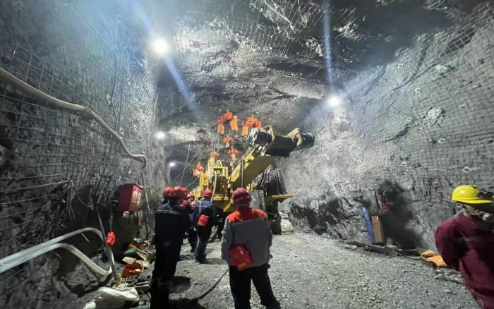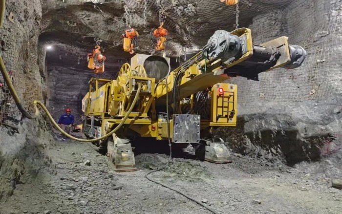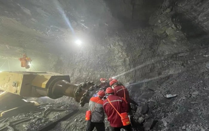 徐工XTR7/360掘進機在礦下展開了一場硬碰硬的較量,平均兩小時進尺1m的施工效率,引來現場采礦工作人員的圍觀。