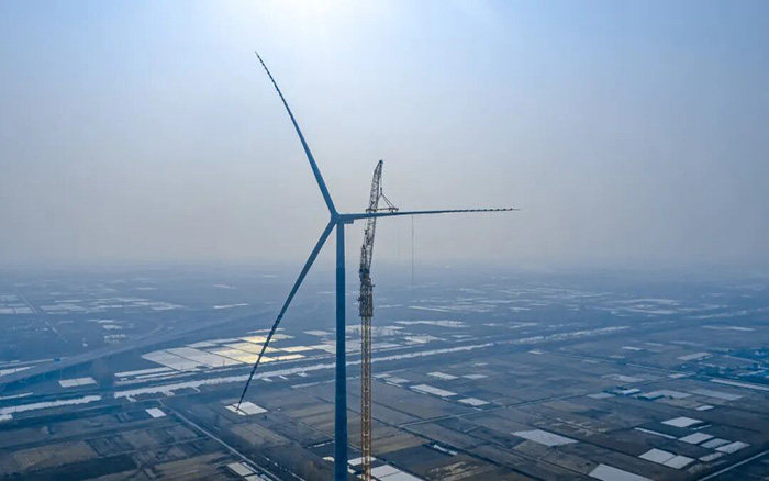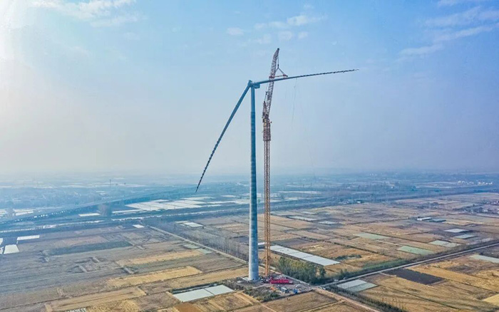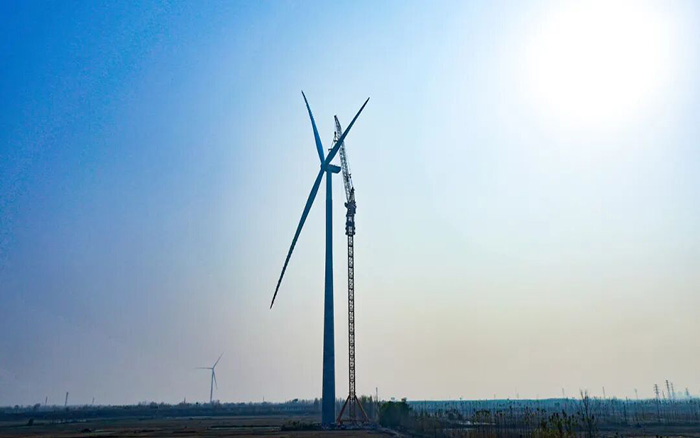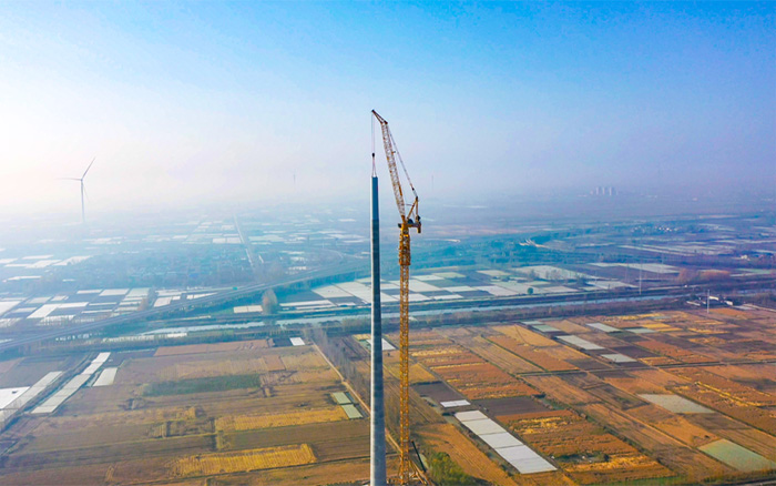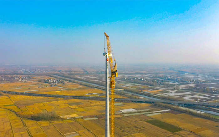 在山東魚臺風(fēng)電項目建設(shè)現(xiàn)場