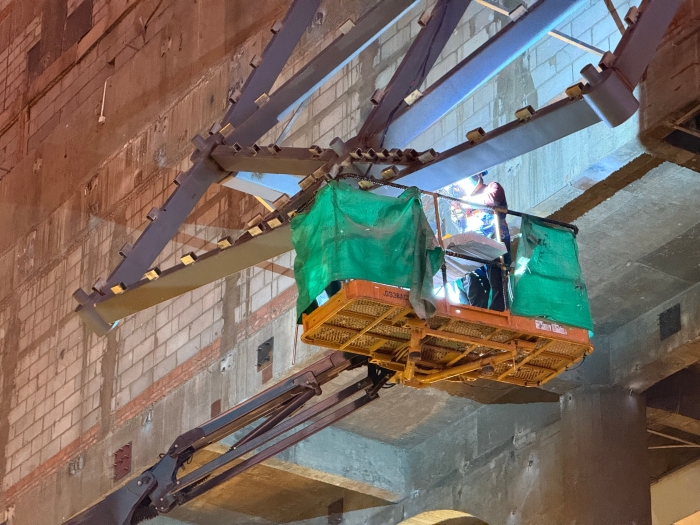 徐工XGS28ACK-Li直臂式高空作業(yè)平臺環(huán)保靜音,純鋰電動力系統(tǒng)實現(xiàn)零排放、低噪音,讓商場施工期間仍能正常營業(yè);緊湊的車身設計讓車輛在商場有限空間內(nèi)自如專場;臂架精準定位,使工作籃能夠精準避開幕墻構件,抵達最佳焊接位置,大幅提升施工效率,獲得現(xiàn)場施工人員一致好評。