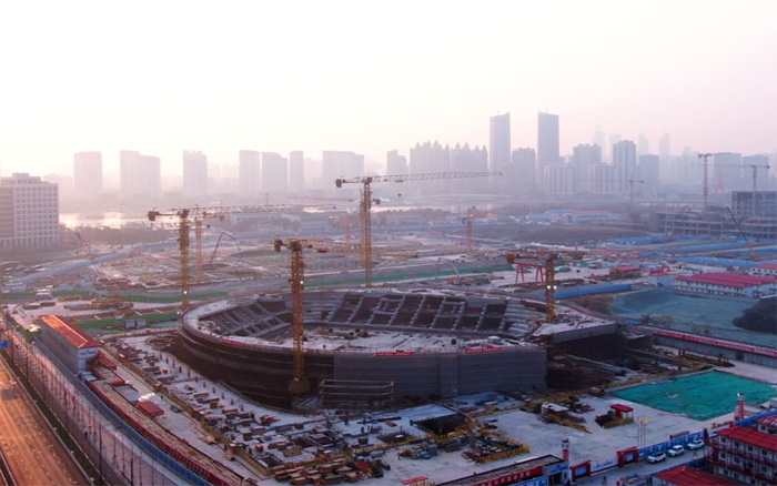 該項(xiàng)目造型獨(dú)特,主賽場(chǎng)區(qū)域結(jié)構(gòu)復(fù)雜,同時(shí)采用大量的曲線設(shè)計(jì),給現(xiàn)場(chǎng)鋼筋、水泥預(yù)制件的制作與安裝帶來了巨大挑戰(zhàn),也對(duì)塔機(jī)的綜合性能提出極高要求。