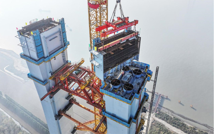 南航道橋北主塔塔柱主體工程全部完工