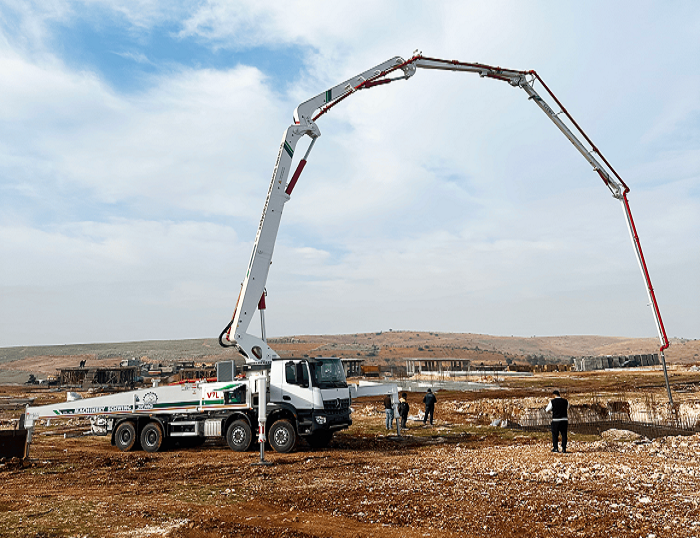 近日,徐工HB47V泵車在土耳其加濟安泰普小鎮的建設現場大顯身手。