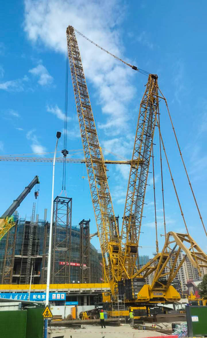 更棘手的是“場地限制關”:工地緊鄰城市道路和已建成建筑,空間局促,不僅XGC15000A的站位要反復測算,還得和多臺塔吊協調作業范圍,避免“搶空間”的機械干涉。