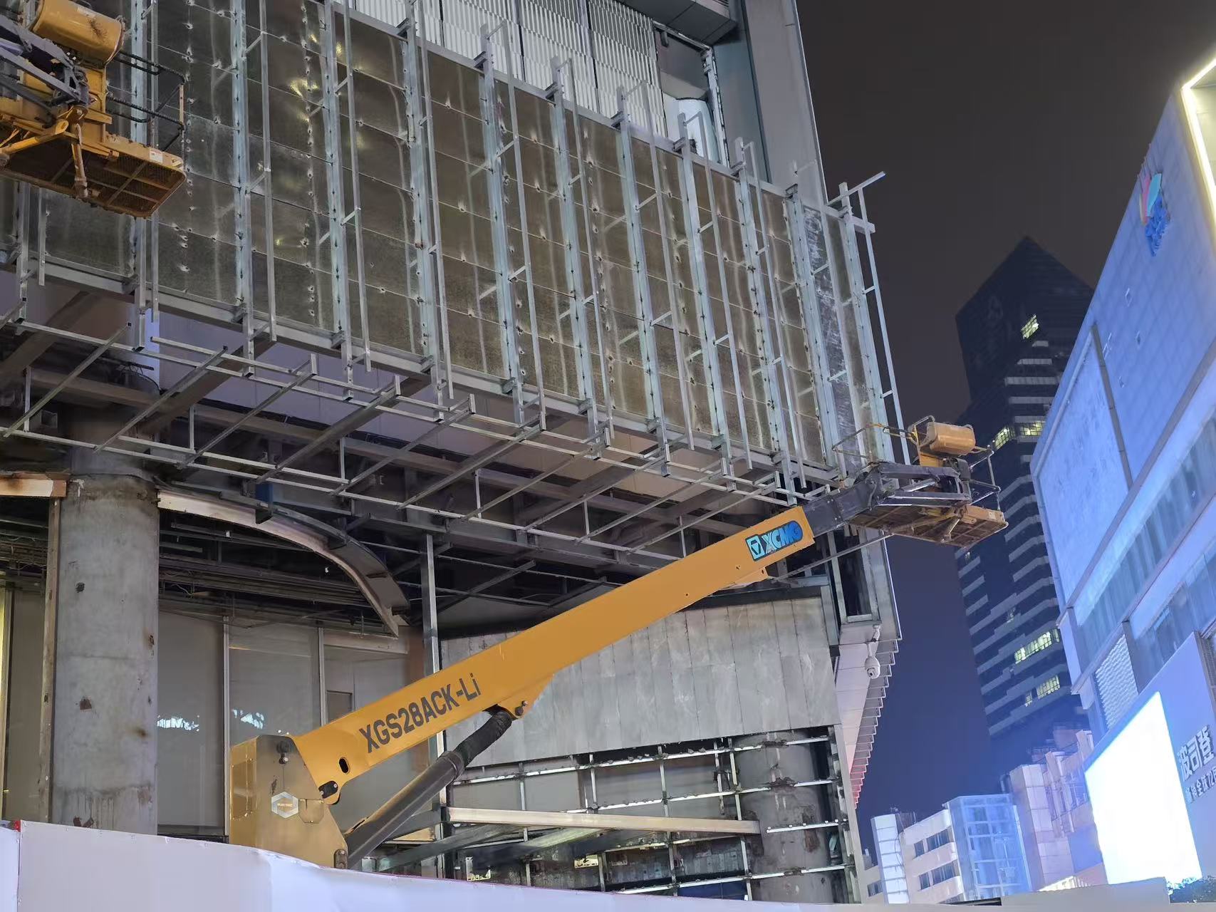 此外,南京新百廣場周邊場地狹窄、人流密集,XGS28ACK-Li緊湊的機身設計使其能在鬧市中靈活轉場、精準作業。從日間的幕墻安裝到夜間的設施檢修,徐工鋰電高空作業平臺以綠色、高效的表現,為南京新百廣場的煥新升級按下“加速鍵”,也展現了徐工在城市商圈施工領域的設備技術優勢。