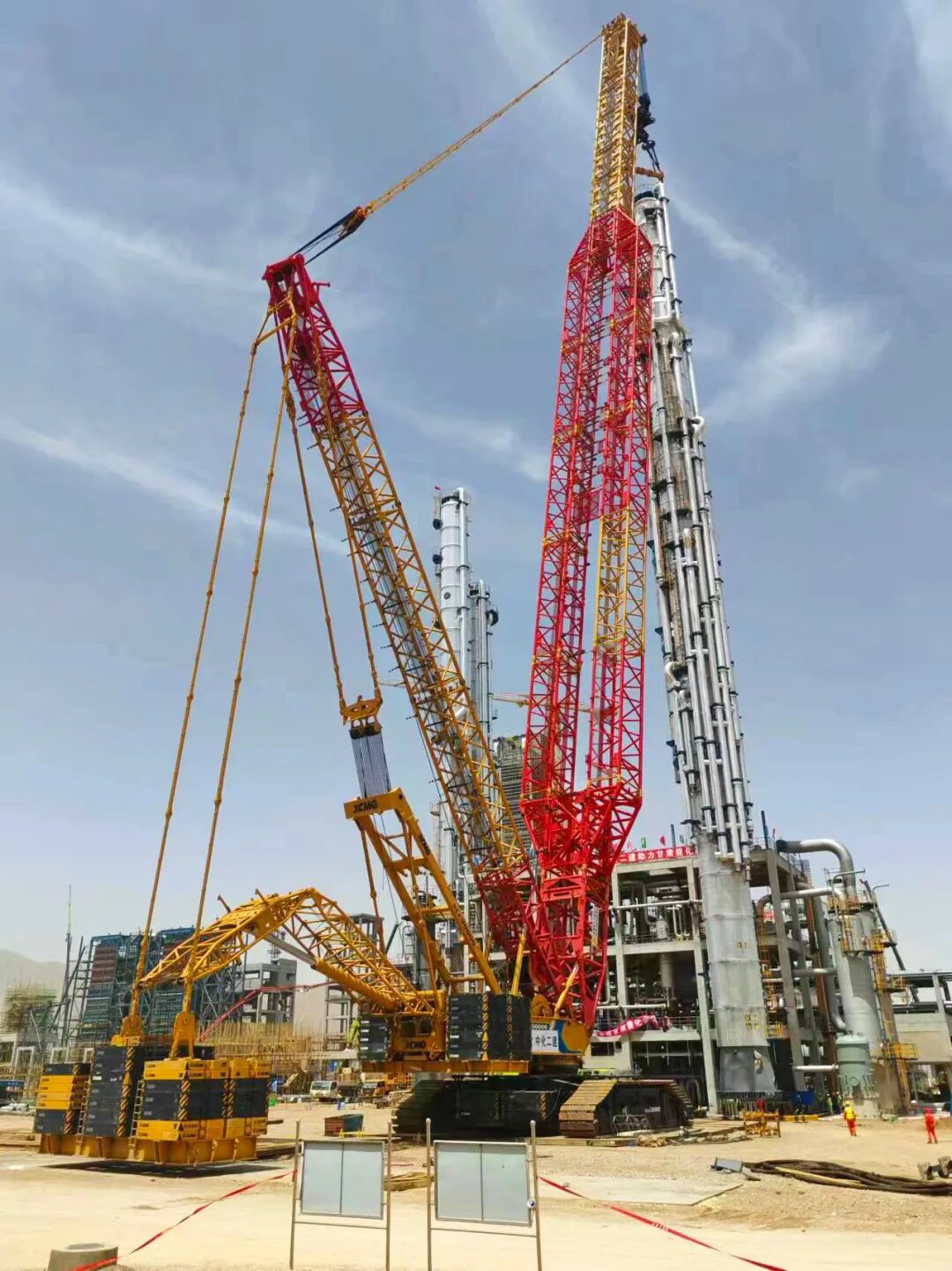 2022年3月,XLC30000首次出口國際市場,在孟加拉最大綠色肥料廠建設(shè)中,將高68.5米、重603噸的二氧化碳汽提塔吊裝就位。