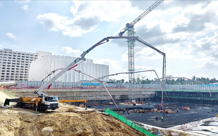 瓊浪翻涌,向海而興。在海南自貿港建設的前沿熱土——三亞,4臺徐工大米數泵車臂架而立,憑借超強泵送力、精準布料與極致穩定性,持續攻堅、高效作業,將10000方C40P8高標號混凝土精準澆筑入項目核心區,為海南建設進程貢獻可靠的“徐工力量”。
